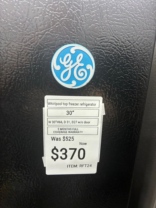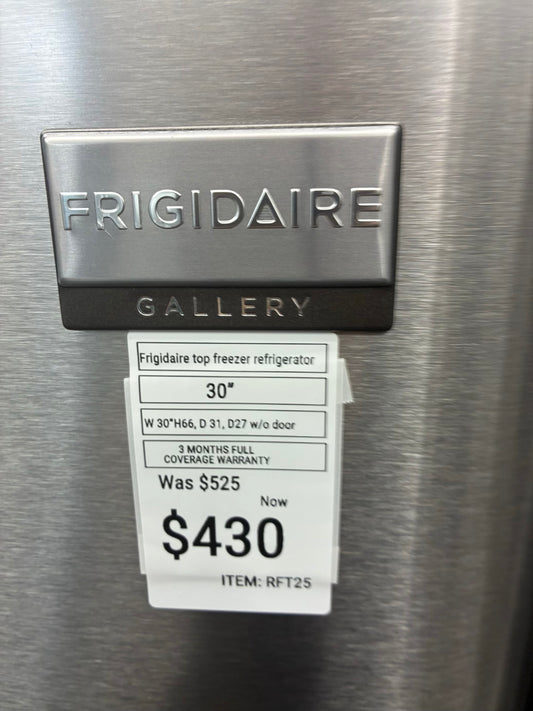 Frigidaire Top Freezer Refrigerator 30” stainless steel , ice maker