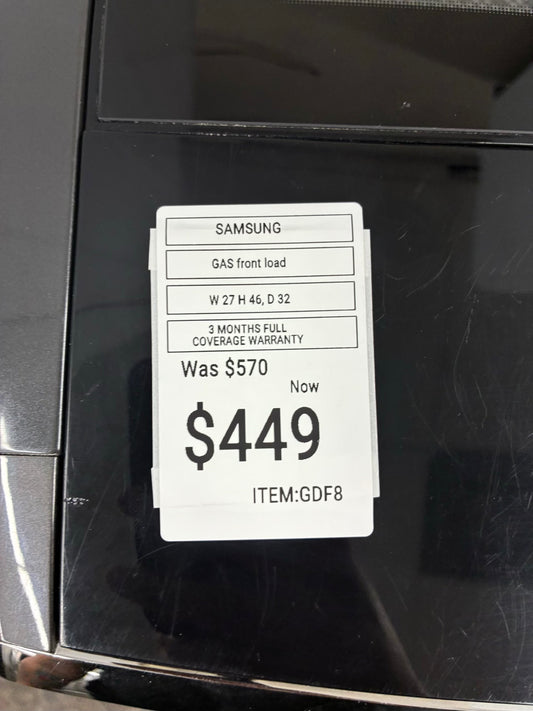 Samsung 7.5 cu ft black stainless steel gas dryer front load 27”