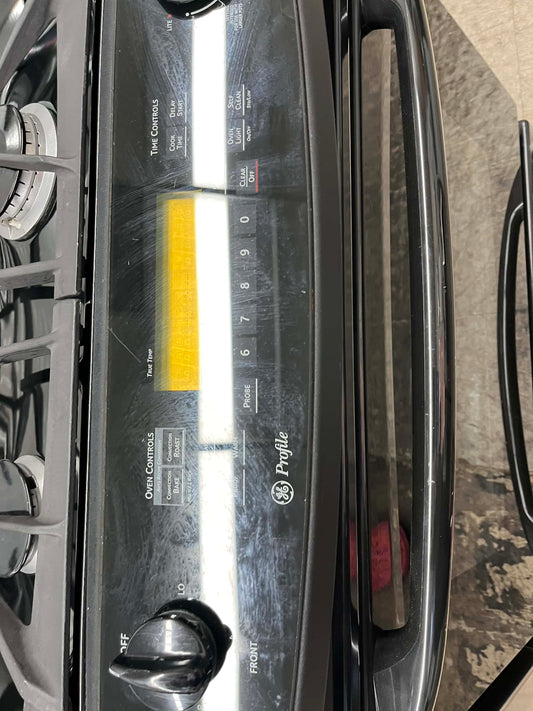^ ITEM #GR83 GE Duel fuel black gas range 5 burner 30 inch