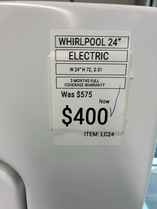 Whirlpool Electric Dryer 27” white front load with pedestal