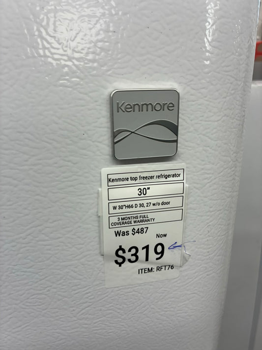 Kenmore top freezer refrigerator white 30”