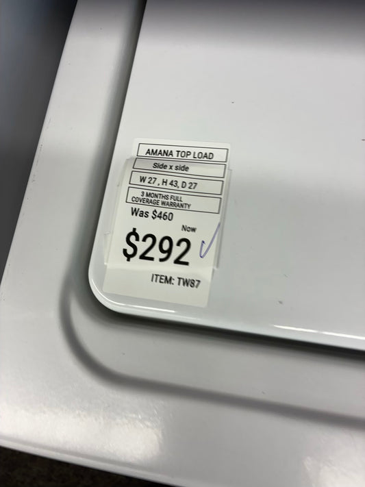 Whirlpool top load washer large capacity side x side 27”