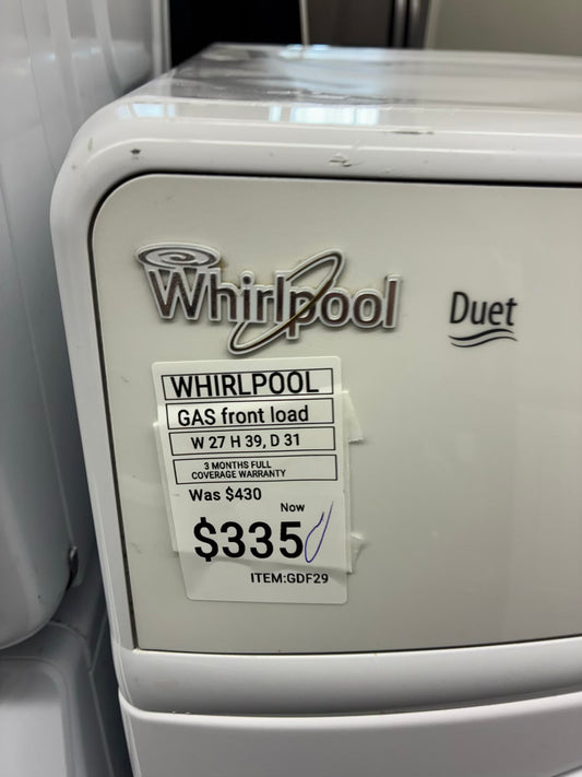 Whirlpool Electric Dryer 27” white front load with pedestal