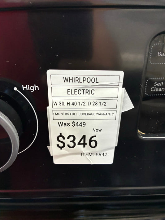 Whirlpool electric range black 4 burners 30”