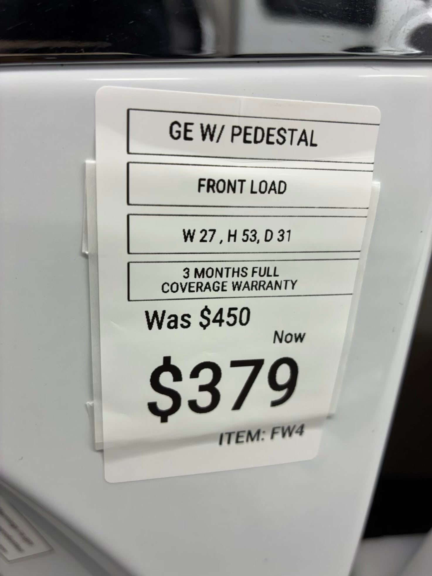GE front load washer machine super capacity 27” with pedestal