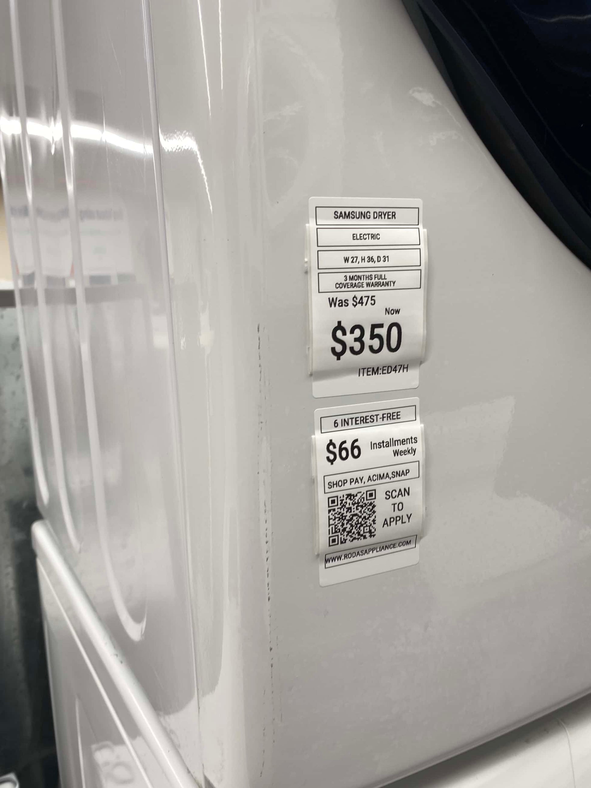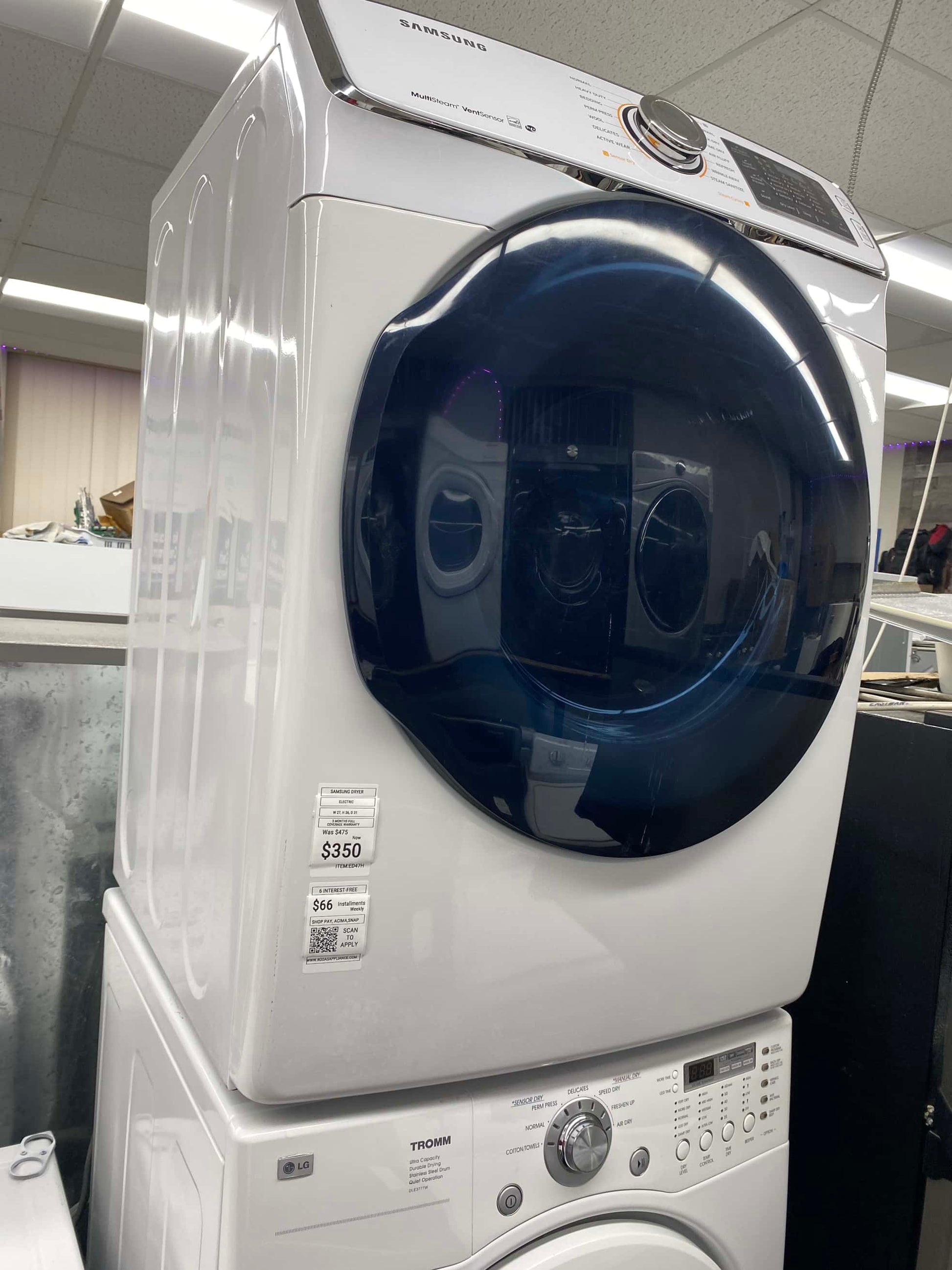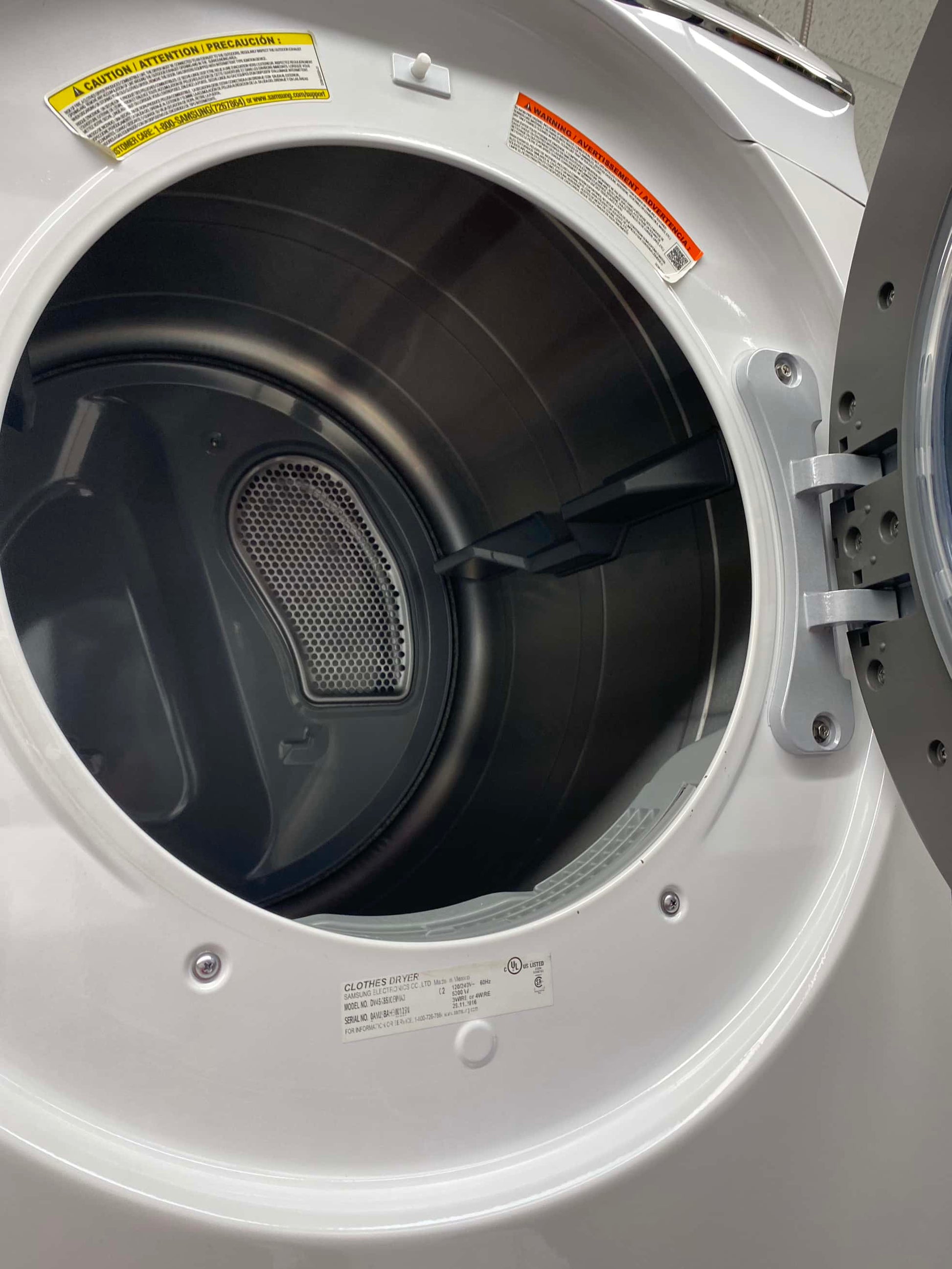 ^ ITEM #ED47H Samsung front load electric dryer 220v stackable large capacity stainless steel drum 27 in D