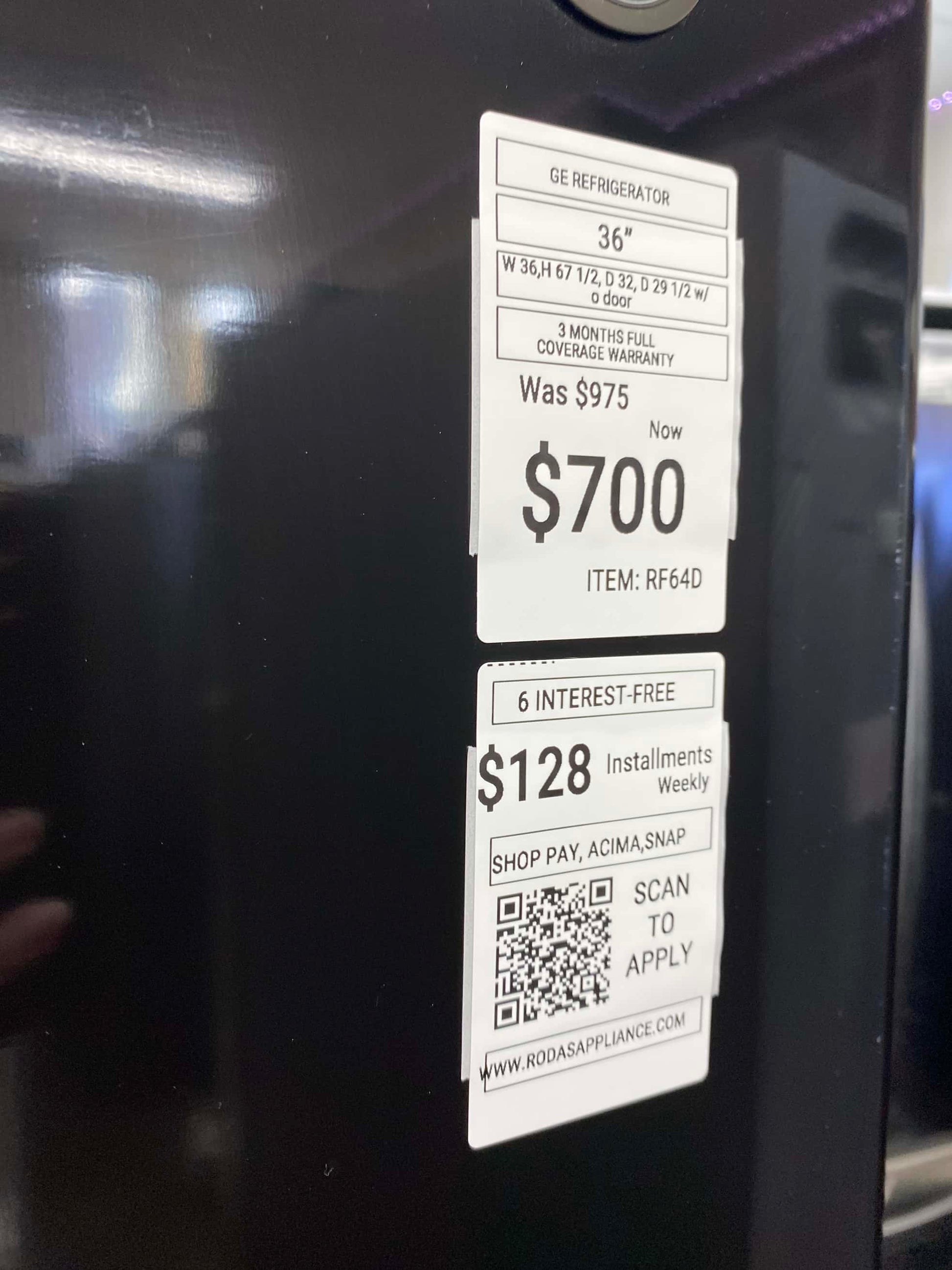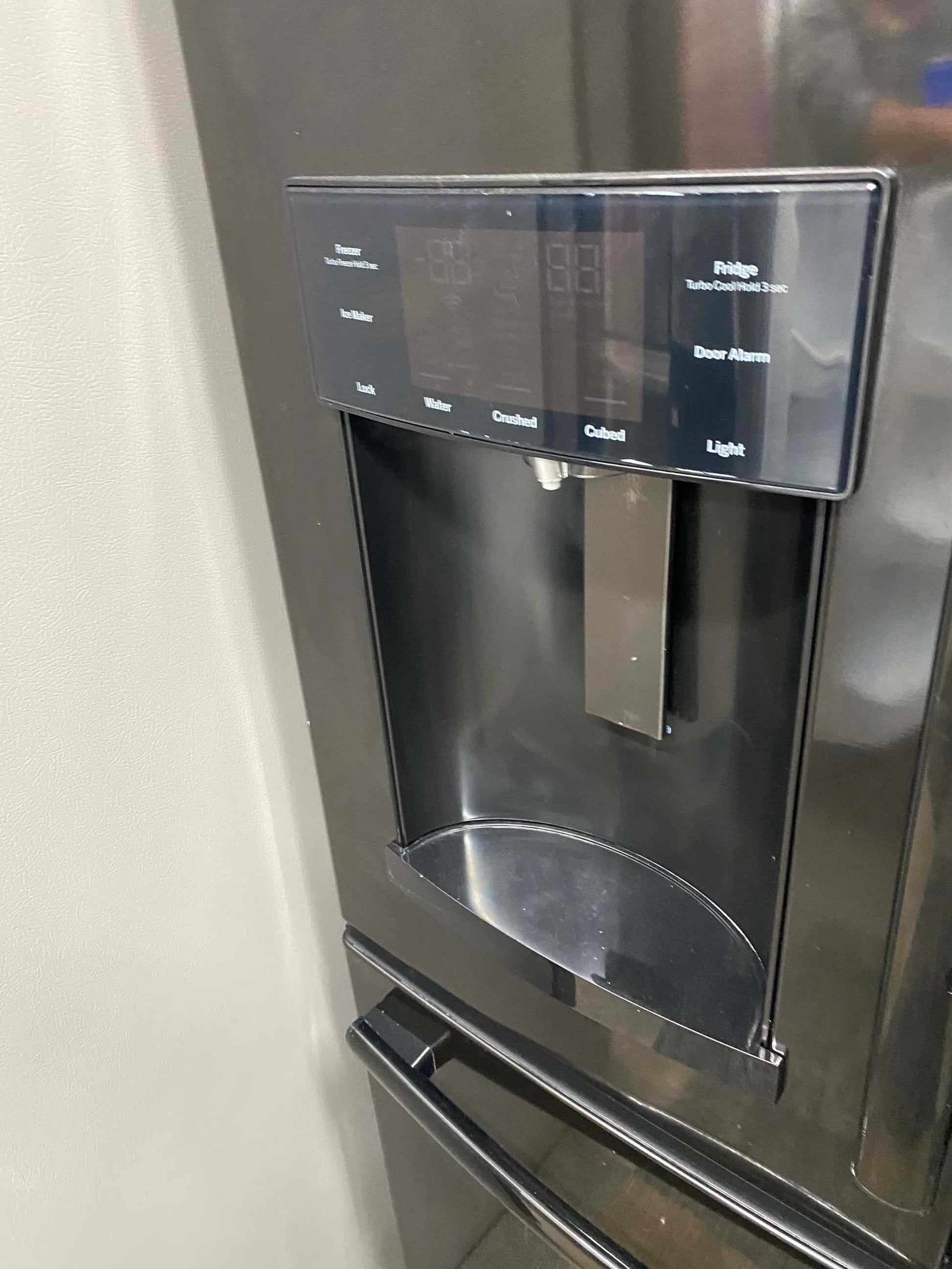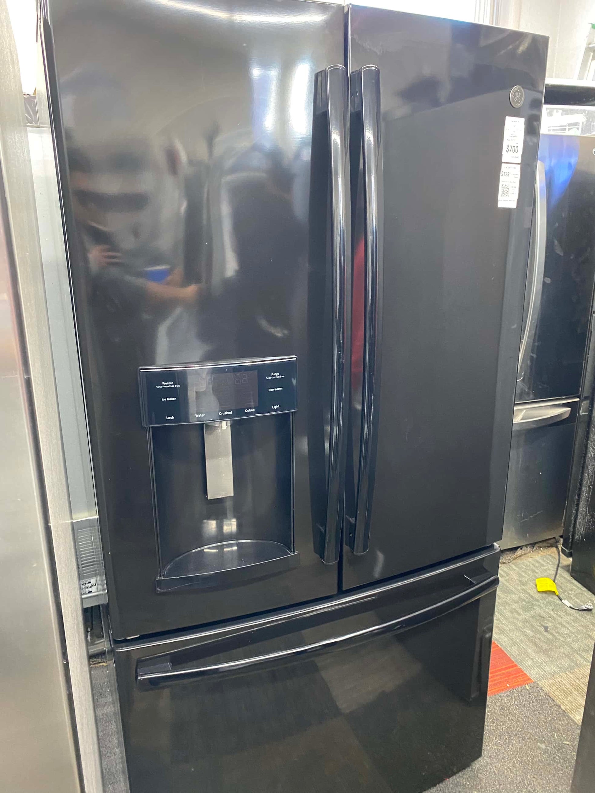 ^ Item: #RF64D GE french door refrigerator stainless steel w/water ice dispenser 36 in