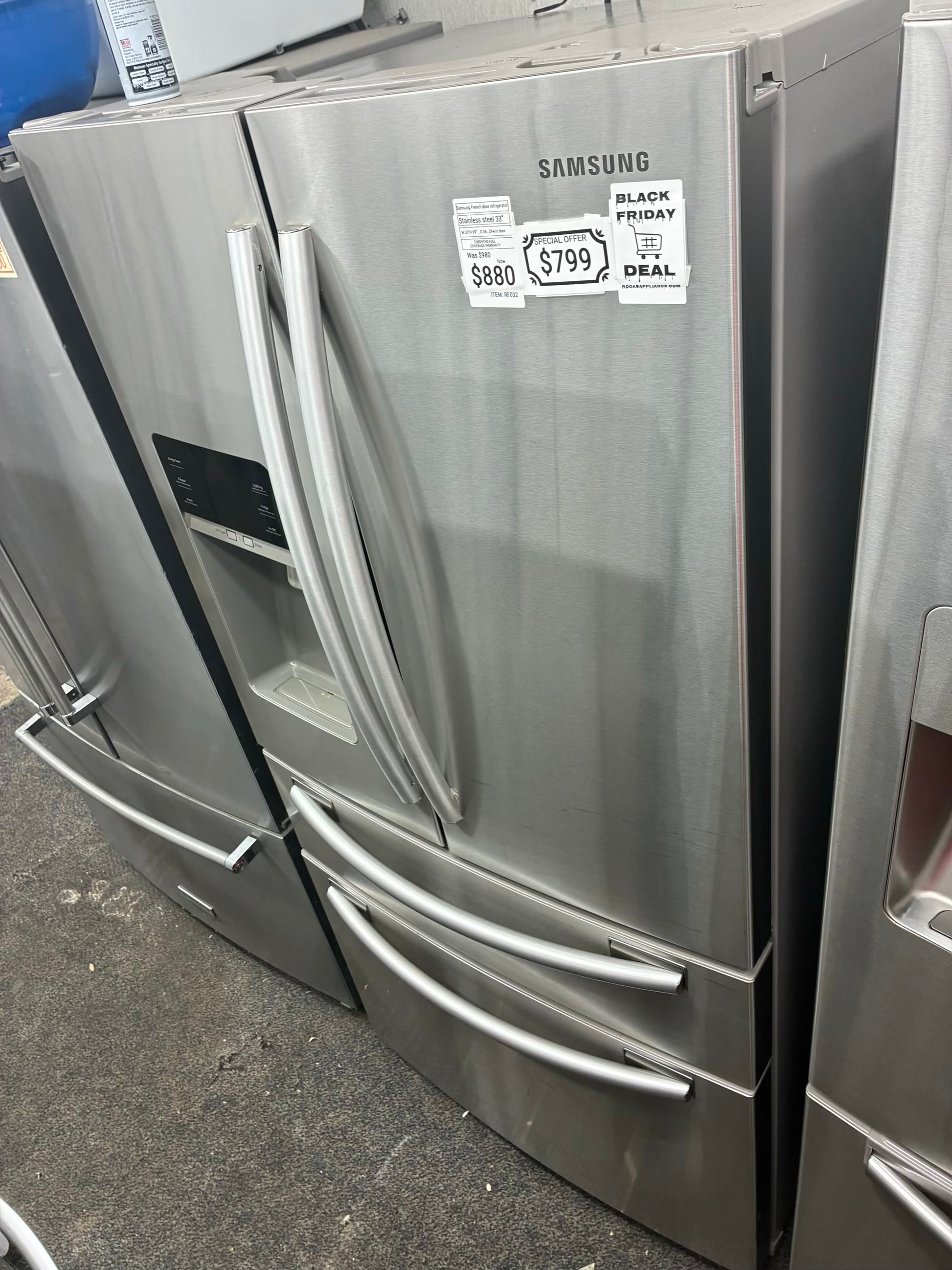 Samsung French 4 door refrigerator stainless steel 33”, Ice Maker BLACK FRIDAY SALE